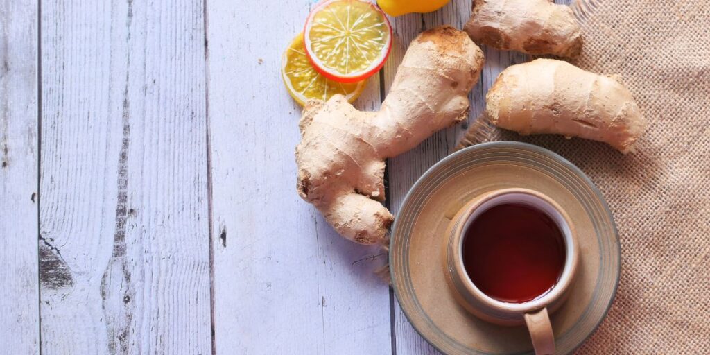 - Chá de gengibre fresco (2-3 xícaras diárias)